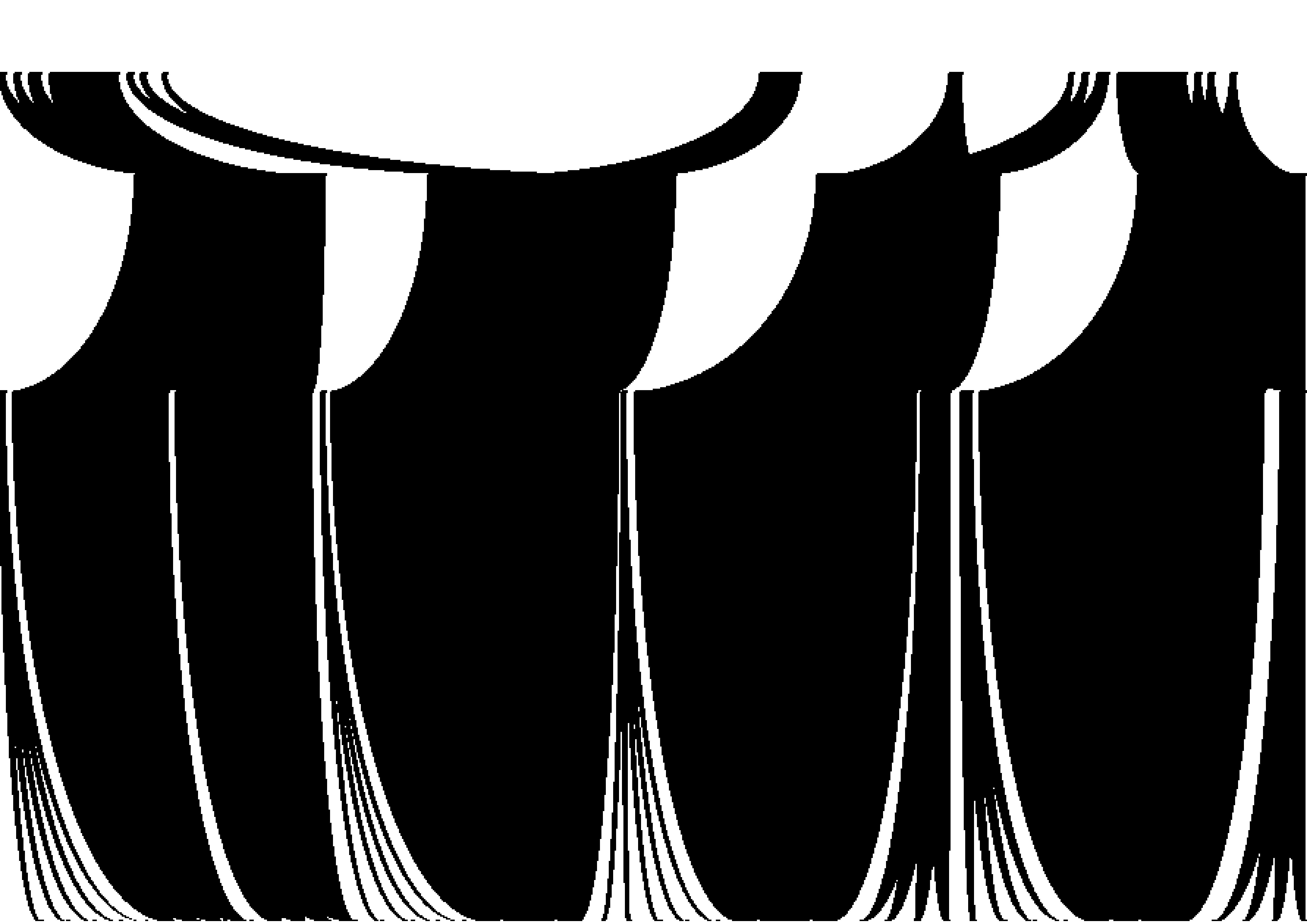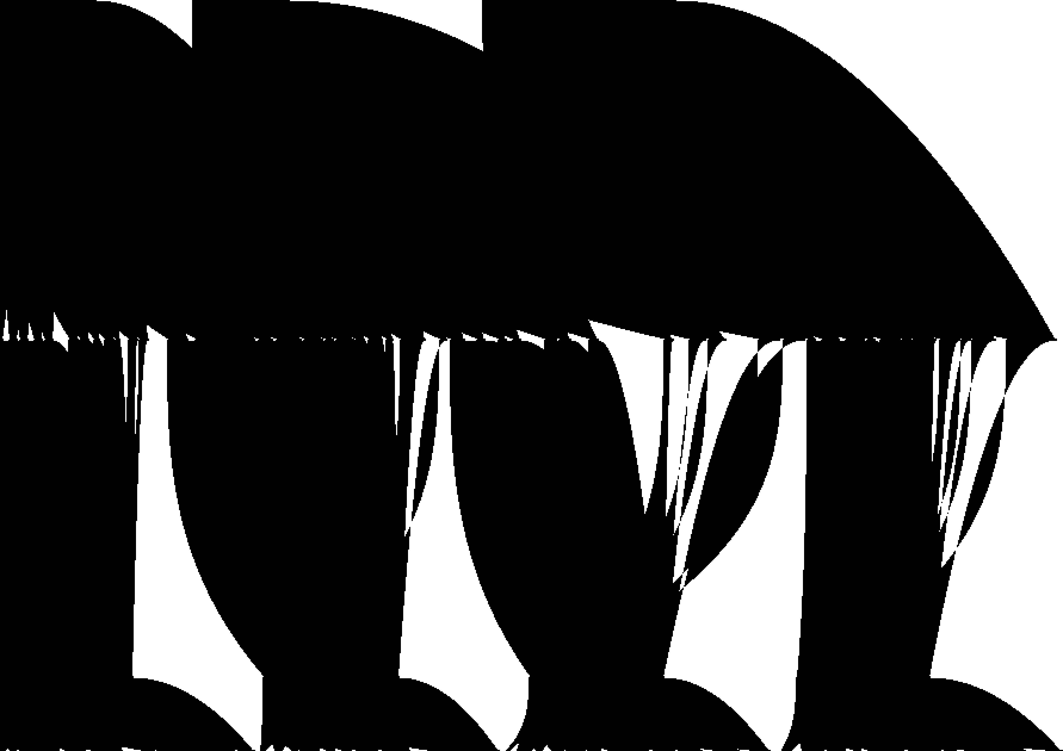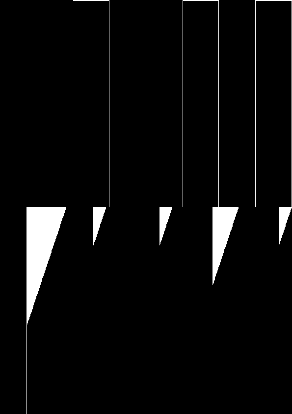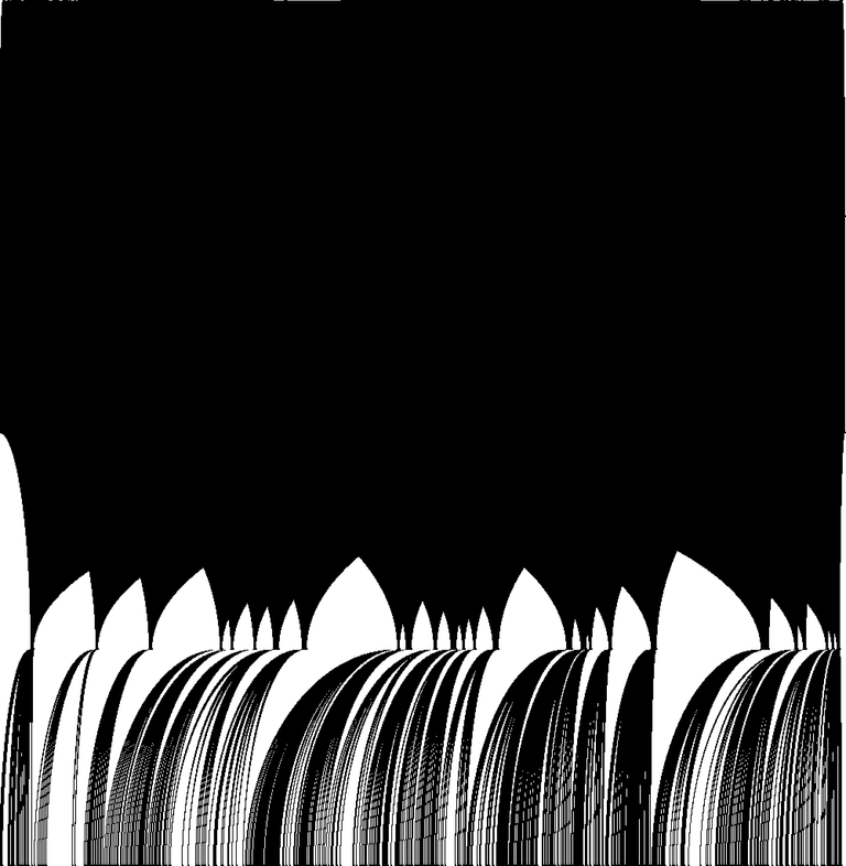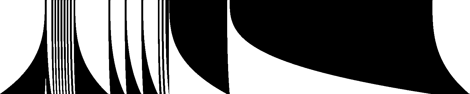 Tout commence par un rythme binaire, une succession de parties noires et blanches, de longueurs variables. C’est cette structure qui, dans le cas présent, signifie le rythme. Le rythme se construit avec un ensemble de vocabulaire simple. Parmi ces briques, nous trouvons, le bruit, qui est une succession aléatoire de longueurs blanches et noires. Il existe aussi des progressions par longueurs, des gradients, des répétitions de motifs, des symétries, des rotations, diverses possibilités de mélange, et bien sûr les combinaisons de tout ceci. C’est un résumé du vocabulaire minimal de construction du rythme binaire.