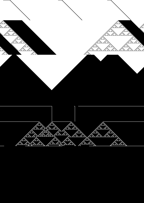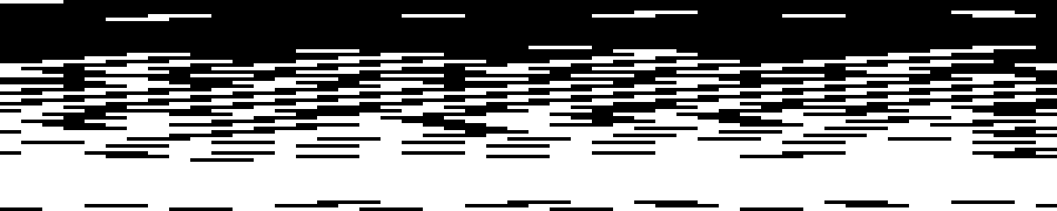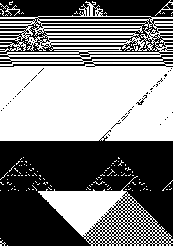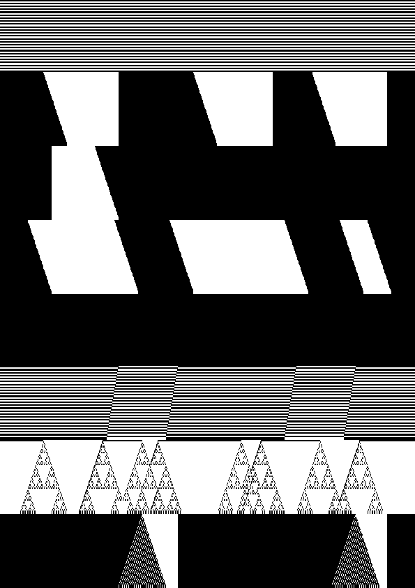 Pour des raisons de teste, un certain nombre d'images ont été générées automatiquement à l'aide de lignes binaires construites aléatoirement et des transitions choisies au hasard. Les images sont représentées à l'aide de simples zéros. Télécharger le livre de transition ASCII en PDF : Transitions Binaires (version ASCII)